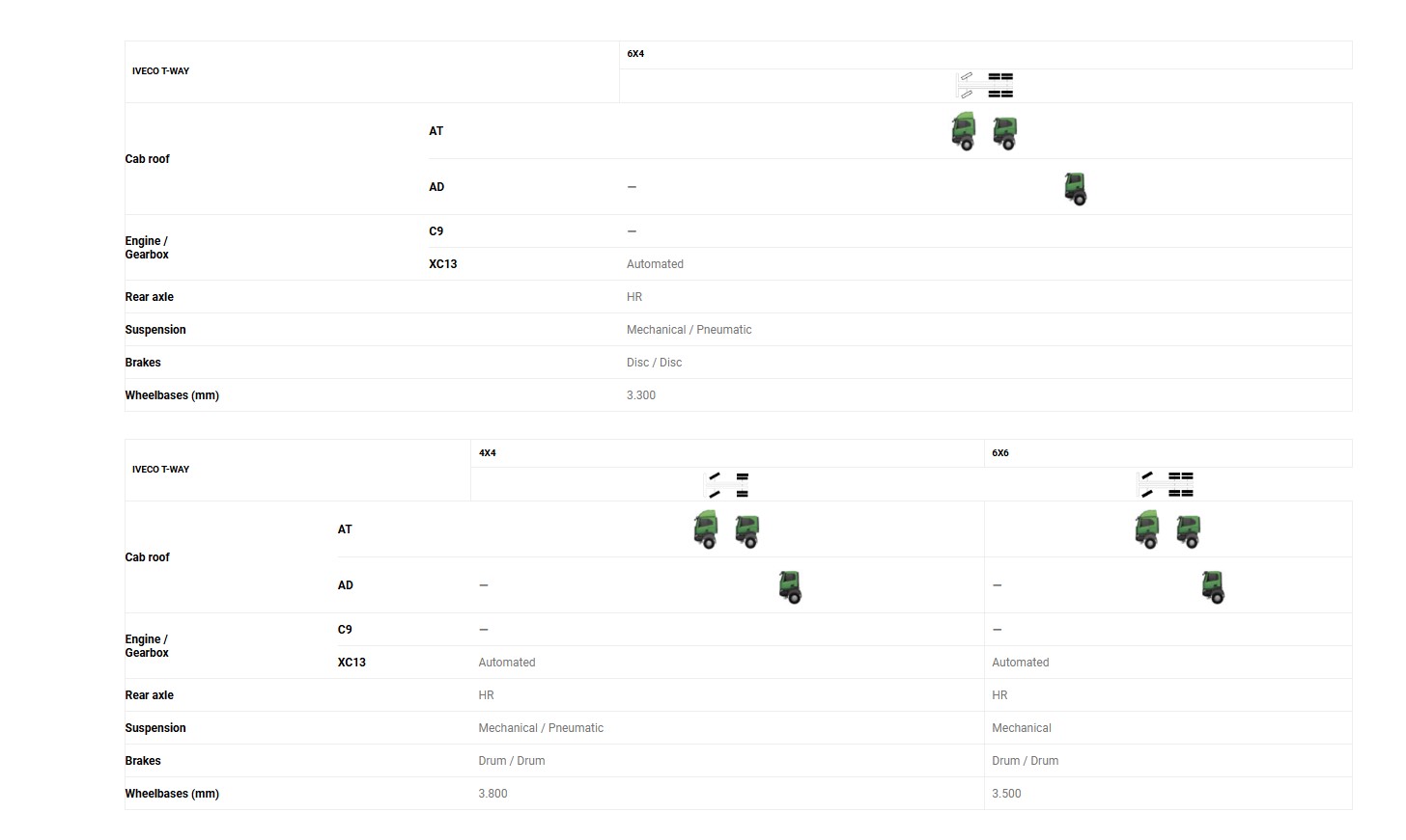 The IVECO T-WAY is a traditional off-road vehicle: it is used almost entirely in hard to reach places or on unpaved roads. It is ideal for missions in quarries, construction sites and mines and for various professional applications.