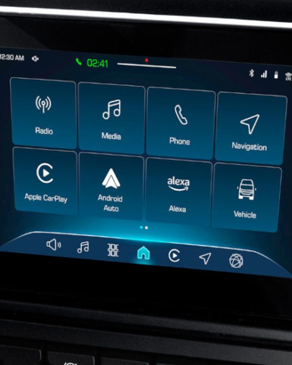 Life on board is even better with the new standard DAB radio and infotainment system. The display, available in 10-inch or 7-inch versions, is integrated into the central section of the dashboard. The driver will easily bring their digital life on board with the standard CarPlay and Android Auto feature, and use on-board vocal driver companion built on Amazon Web Services with Amazon Alexa* features with the in cab microphone.