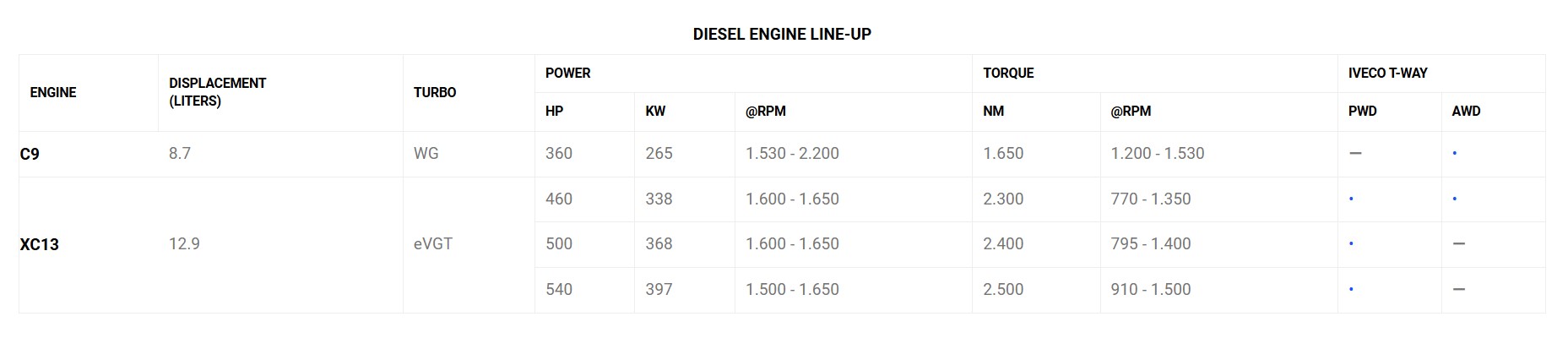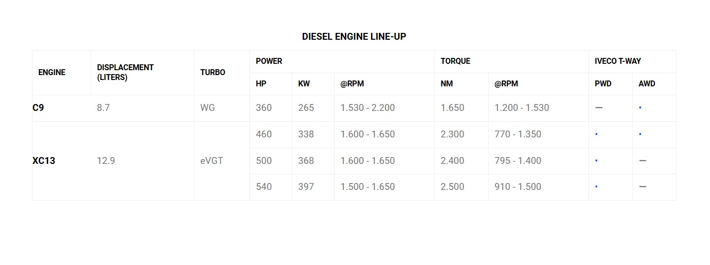 The engine line-up with the introduction of the new XC13 engine bring cutting-edge solutions, excellent fuel efficiency, with a consistent reduction in consumption.