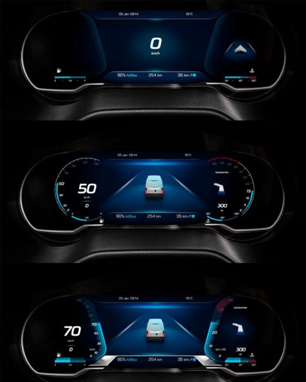 The Daily stands out from the crowd with its standard 10-inch cluster, which provides excellent visibility of the vehicle’s information on the wide screen with more readable, larger font sizes. The driver can choose from three layouts, easily switching with the stalk lever button. Models without infotainment or DAB radio display the rear camera view when the reverse gear is engaged.