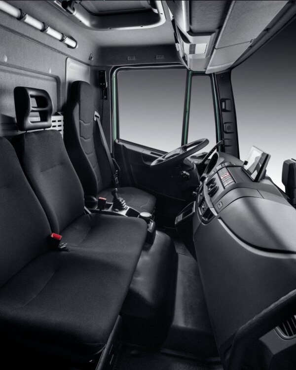 The driver’s comfort is guaranteed by seats with full backrest and electro-welded fabric. There are optional “high-comfort” pneumatic seats available, with wide backrest adjustment, variable height seat belt, double density padding, and heating / ventilation. Armrests are an option with all pneumatic seats.